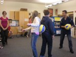 West Bath School students play a Japanese game. Don’t fall!