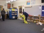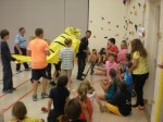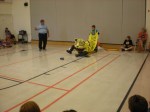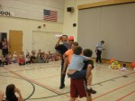 Principal Matthew Carlson gaining support from his students in preparation for his sumo match-ups!